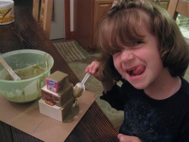 We made plants out of toothpicks, floral tape, leaves from a pretend flower, green wire, tissue paper, and clay. My sister helped me "plant" the garden. We used clay for the soil.